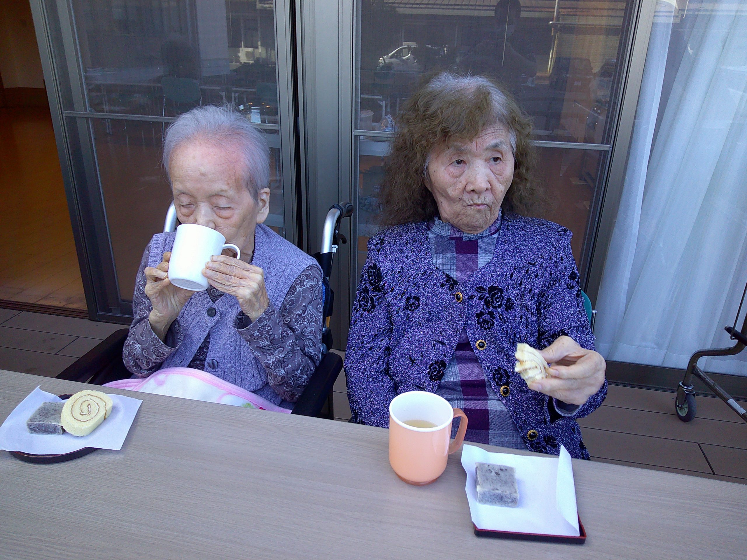 外の風を感じながらいただくおやつは、格別の美味しさ!「美味しいね!」と、皆さま笑顔いっぱいのひとときでした(*^_^*)💓