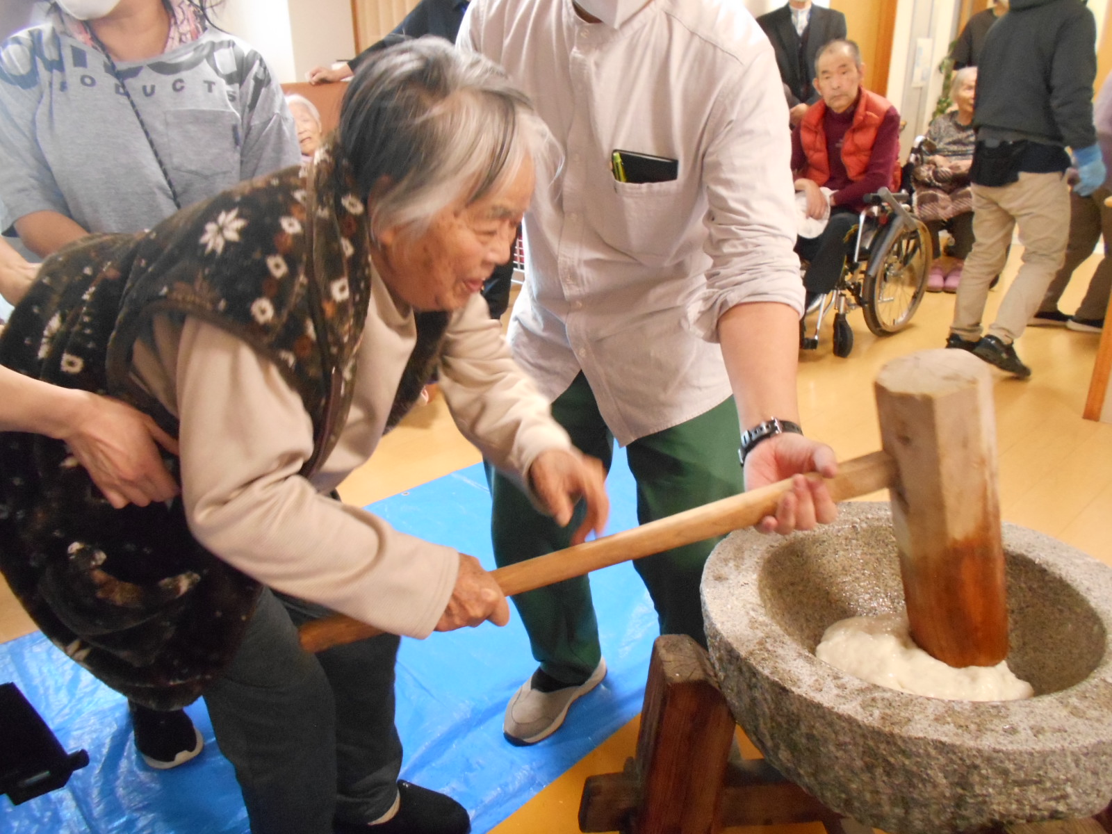 餅つき、柳餅作りの様子です🙌