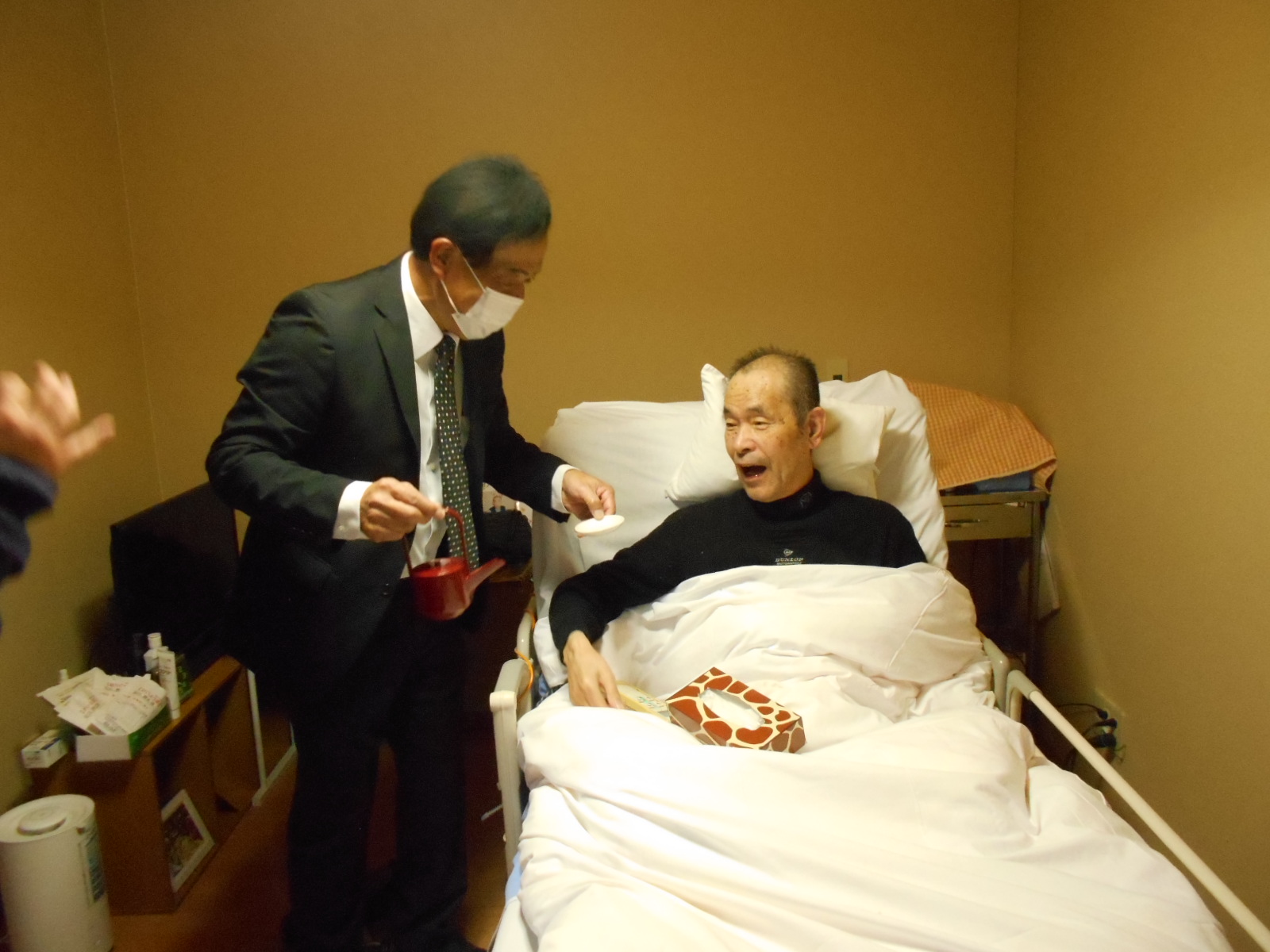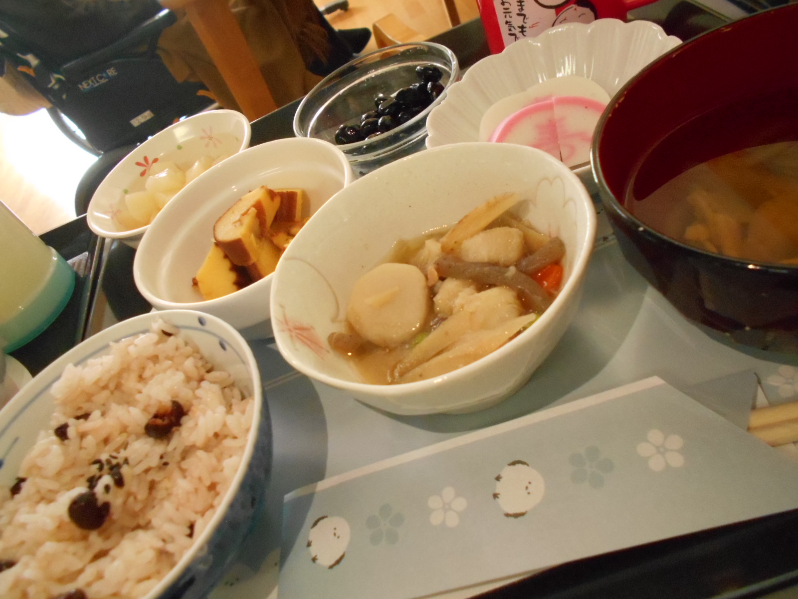 ユニット3階の元日の様子です😊苑長よりお屠蘇を頂き、昼食は美味しそうなおせちが出ました!