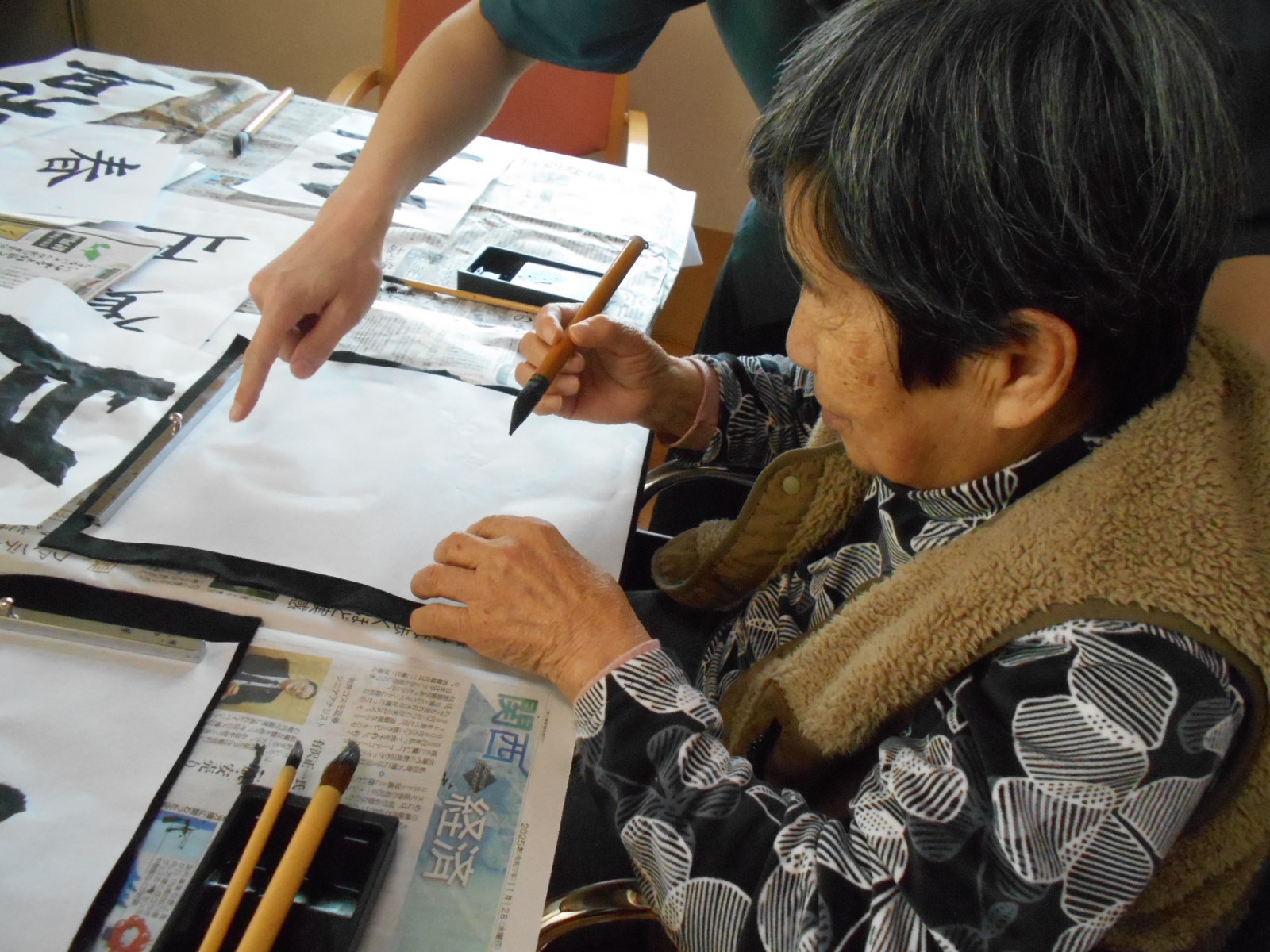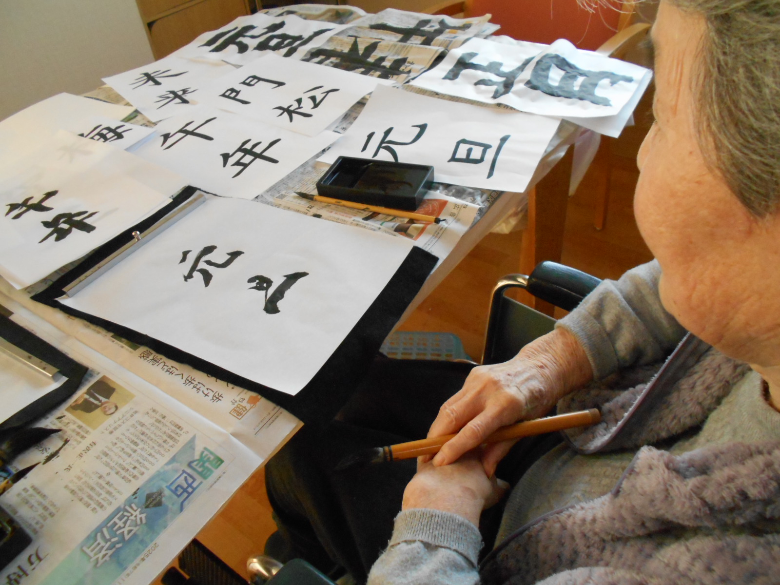みんなで福笑いをしたり、書初めをして楽しまれていました😄